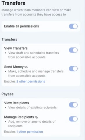 - Select the user(s) who need permission to make payments via open banking